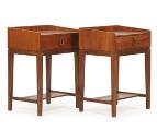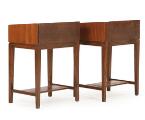 Par sengeborde af nøddetræ. front med skuffe, greb af messing. Udført hos Søborg Møbelfabrik. H. 57. B. 40. D. 30. (2)