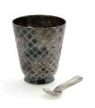 A sterling silver cocktail goblet with engraved harlekin decor. Georg Jensen 1945–1977. Design no. 819 B. Weight 55 g. H. 6 cm. Diam. 5.6 cm. Accompanied by an “Old Danish” salt spoon. Georg Jensen after 1945. Weight 7 g. L. 6 cm. (2)