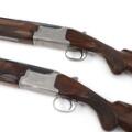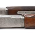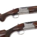 A pair of Winchester Grand European 12-bore boxlock O/U guns. No K414586/87. (4) 71 cm nitro barrels. Action engraved with rose and scroll. Trigger guards marked I and II. 36 cm figured wood.