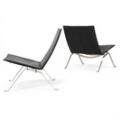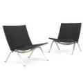 “PK 22”. A pair of easy chairs with legs of chromed steel. Seat and back with black leather. Designed 1955. Manufactured and marked by Fritz Hansen, 2005. (2)
