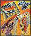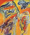 “Frøjd's hær”, 1988. Signed, titled and dated on th ereverse. Acrylic on canvas. 70×60 cm.
