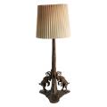 A circa 1900 patinated bronze table lamp in shape of three goats and a tree. H. excl. mounting 51 cm.