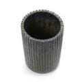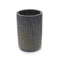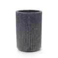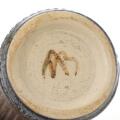 Cylindrisk vase af stentøj modelleret med vertikale riller i relief. Dekoreret med mørkeblå glasur med lyseblå og brungrønne elementer. Sign. monogram. H. 12 cm. Diam. 8 cm.
