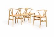 “Y-stolen”. Fire armstole med stel af eg, sæder af flettet papirgarn. Model CH 24. Designet 1949. Udført og mærket med label hos Carl Hansen & Søn, Aarup. Sædehøjde 45 cm. (4)