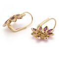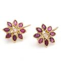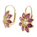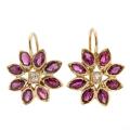Et par rubin- og diamantørestikker af 17 kt. guld hver prydet med talrige facetslebne rubiner på i alt ca. 3.70 ct. samt diamanter old mine-cut diamanter på i alt ca. 0.25 ct. Samlet vægt ca. 6 g. L. ca. 22 mm. (2)