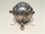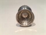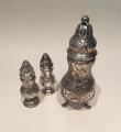 Strøbøsse samt salt-og peberbøsse af sølv. Mærket 830 samt Hr. G. Samlet vægt 247 g. Strøbøsse H. 18. Diam. 6. Salt- og peberbøsse H. 10. Diam. 3,5. (3)