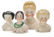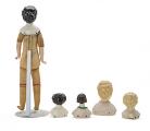 A 19th century parian porcelain doll and 4 parian sholderhead dols. H. doll 41 cm. (5)