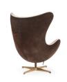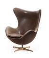 “Det gyldne æg”. Hvilestol med vippebeslag, stjernefod og stamme af massiv håndpoleret bronze, front betrukket med chokoladebrunt skind og bagside med chokoladebrunt ruskind. Model 3316. Udført hos Fritz Hansen i 2008.