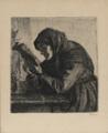 “Læsende gammel kone”. Opus 1. Tryksign. A. A. 96. Radering. Lysmål 16×13,5 cm.