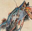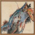 Uden titel, 1976. Signeret J. Haugen Sørensen. Akvarel på japan papir, opklæbet på lærred. 70×72 cm.