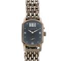 A lady's wristwatch of 18k white gold. Model Cabaret. Mechanical movement with date and manual winding, calibre L931.3. Blue dial with hands and hour markers of white gold. A. Lange & Söhne bracelet of 18k white gold with concealed clasp. Circumference app. 17 cm. Watch diameter app. 22 mm. Circa 1994–1997.
