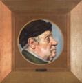 Profilportræt af herre med pelshue. Sign. HNH 77. Olie på lærred. 29,5×26.