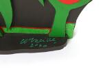 Kat samt fugl. Sign. Corneille 2000, 7/150. Bemalet træ på begge sider. H. 30. L 33.