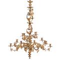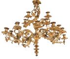 Nyrokoko lysekrone af forgyldt metal med 16 lysarme i to etager. 19. årh.s anden halvdel. H. 116. Diam. 87.