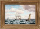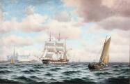 A seascape with ships sailing past Kronborg Castle on the coast of Elsinore. Signed Joh. Neumann. Oil on canvas. 58×89 cm.
