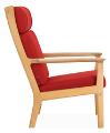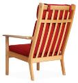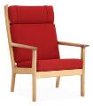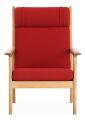 “GE 265”. High backed oak easy chair. Cushions in seat and back upholstered with red wool. Manufactured and marked by Getama, Gedsted.