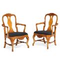 A pair of Swedish walnut armchairs, seat upholstered with black furniture fabric, carved with cabriole legs. Circa 1900. (2)