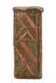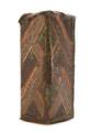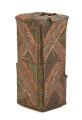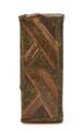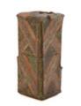 Høj, firsidet vase af stentøj med indridsninger i relief. Dekoreret med mørkebrun, rødbrun, hvid, blå og grønlig glasur. Sign. monogram. Unik. 30,7. B/L. 13.