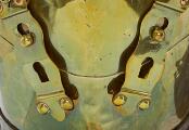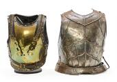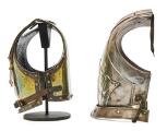French First Empire kurrasse on a stand, mounted with brass on both the front and back plate with brass rivets along the rim, which have held the now missing inner lining and a later front plate for decoration. (2)