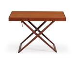 Mahogany coffee table with folding frame. Model MK-19. Designed 1960. Made by Rud. Rasmussen Cabinetmakers, marked with brass plaquette. H. 35/47 cm. L. 71.5 cm. W. 53 cm.