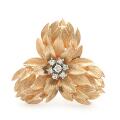 A diamond brooch/pendant set with seven brilliant-cut diamonds, mounted in 14k satin gold. Weight app. 9 g. Diam. 3.5 cm.