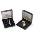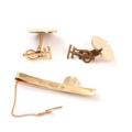 A pair of 14k gold cufflinks and a tie pin. Tie pin L. 5.2 cm. Weight app. 17 g. (3)
