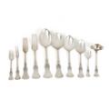 Bestående af: 12 middagsgafler, 3 + 1 middagsskeer, 8 skeer, 11 frokostgafler, 5 kagegafler, 6 dessertskeer, 10 kaffeskeer, 1 pålægsgaffel og 1 flødeske.
