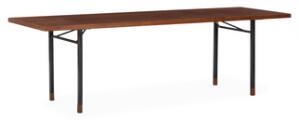 Coffee table with black lacquered steel frame. Rosewood top and teak shoes. H. 56 cm. L. 180 cm. W. 60 cm.