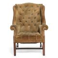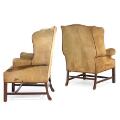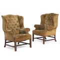 Et par engelske øreklapstole af mahogni, sømbeslået med dybhæftet grønligt ruskind. 19. årh. slutning. (2)
