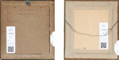 A few superficial scratches, minimal crackles and slight bulging. The latter slightly wavy at edge, minor retouches and minimal paperloss in upper left corner. Both in need of a light surface cleaning.