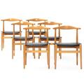 “FH 1934”. A set six lacquered beech armchairs upholstered in seats with black leather. Designed 1949. Manufactured by Fritz Hansen. (6)