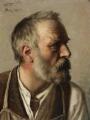 Portrait of a man with a grey beard seen in profil. Verso a portrait of a gentleman in a black suit. Signed and dated W. T. Maj 1903. Oil on panel. 43×32.5 cm.