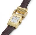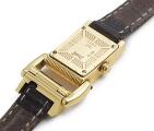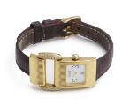 Miss Protocole in 18k gold set with brilliant-cut diamonds, ref. 5222. Quartz movement. 2000s. Brown lizard strap with a gold-plated steel pin buckle. Ø 17 mm.