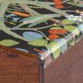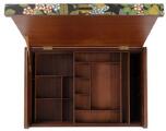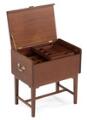 Sybord af mahogni opsat og greb af messing. Opklappeligt låg hvorunder rum og to justerbare ruminddelte bakker. Senere beklædt med blomstret Josef Frank print. Udført hos snedkermester Ludvig Pontoppidan. H. 57 L. 50. B. 34.