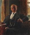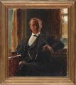 Portræt af en siddende, fornem herre, 1884. Sign. monogram samt “Erindring fra Juletid 1884 i Vejle”. Olie på lærred. 32×27.