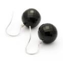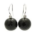 Et par diamant- og onyksørestikker af 18 kt. hvidguld hver prydet med brillantslebet diamant og brioletteslebet onyks kugle Samlet vægt ca. 11 g. Onyks diam. ca. 14 mm. L. 2.9 cm. (2)