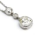 Belle Epoque diamanthalskæde af platin prydet med tre old-cut diamanter på i alt ca. 3.69 ct. Farve: Crystal-Light Yellow (J-O). Klarhed: VS-P1. L. ca. 42 cm. London, ca. 1900–10.