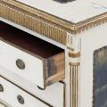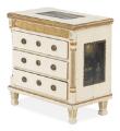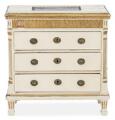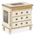 Dansk Louis XVI kommode af hvidmalet og guldstafferet træ, sider og top med maleri. 18. årh.s slutning. H. 58. B. 57. D. 34.