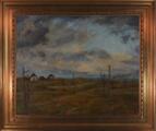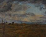 Landscape with fish nets and view to the coast. Signed N. F. Larsen. Oil on canvas. 92×113 cm.