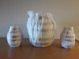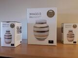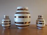“Omaggio”. Tre vaser af fajance horisontale stregmønstre. Udgivet i anledning af Kählers 175 års jubilæum. Ubrugt med original emballage. H. 12,5/20. (3)