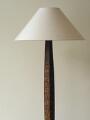 A stained oak flooe lamp with carved leaf ornaments on the base and stem. 1920–30s. H. 145 cm. incl. shade holder.