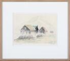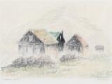 “Bygde huse, Færøerne”. Signeret Sv. Å. Madsen. Oliekridt på papir. Lysmål 27×36,5 cm.