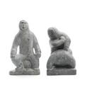 Two carved soapstone figures in the shape of a hunter and a seated man. Signed respectively Simon and Simon Kr. H. 12–14 cm. (2)