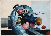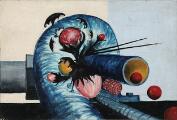 “Kærnekraft”, 1966. Signeret på bagsiden med datering. Olie på lærred. 45×65 cm.