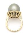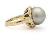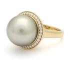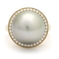 A pearl and diamond ring set with a cultuted Tahiti pearl encircled by numerous brilliant-cut diamonds weighing a total of app. 0.34 ct., mounted in 18k gold. Weight app. 13.5 g. Pearl diam. 14–15 mm. Size 53.
