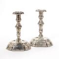Et par stager af sølv, barok form. Mester Hugo Grün, København 20. årh. Udfyldte. H. 17 cm. (2)