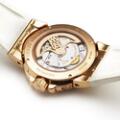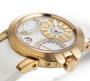 A lady's diamond wristwatch of 18k gold. Model Opus. Automatic movement with date, day and power reserve. Mother of pearl dial with sub-registers set with numerous diamonds. White Harry Winston rubber strap with C-buckle of 18k gold. Watch diameter app. 37 mm. 2000's