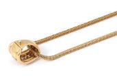 Oplukkelig diamantvedhæng af 14 kt. guld prydet med talrige brillantslebne diamanter. Halskæde af 14 kt. guld medfølger. Samlet vægt ca. 11 g. Vedhæng L. 15 mm. L. 41,5 cm. (2)