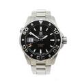 A gentleman's wristwatch of steel. Model Aquaracer, ref. WAJ2110. Mechanical movement with automatic winding and date, cal. 5. Black dial with white hour markers and hands. TAG Heuer bracelet of steel with folding clasp. Circumference app. 20 cm. Watch diameter 43 mm. 2011.