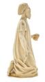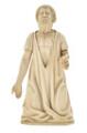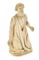 Barok figur af elfenben i form af knælende apostel iført tunika og med en genstand i venstre hånd, ansigt og hår detaljeret skåret. Antagelig Tyskland, 17. årh. H. 12 cm.